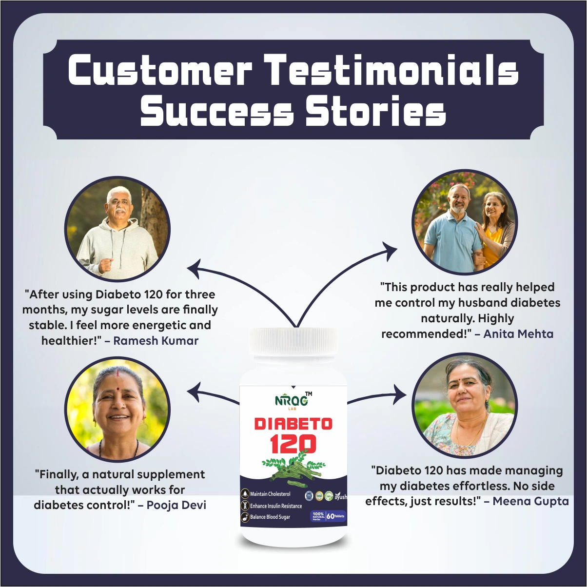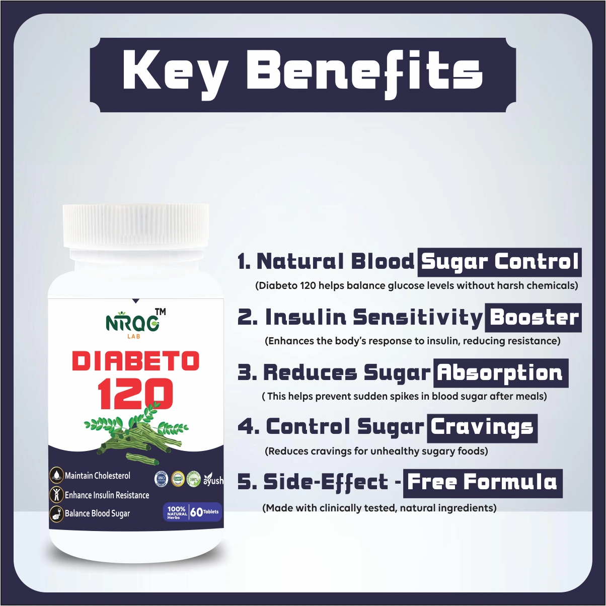 The Nirog Lab Diabeto 120 Tablet is an Ayurvedic supplement designed to support individuals managing diabetes. It combines traditional Ayurvedic wisdom with modern scientific research to assist in regulating blood sugar levels.