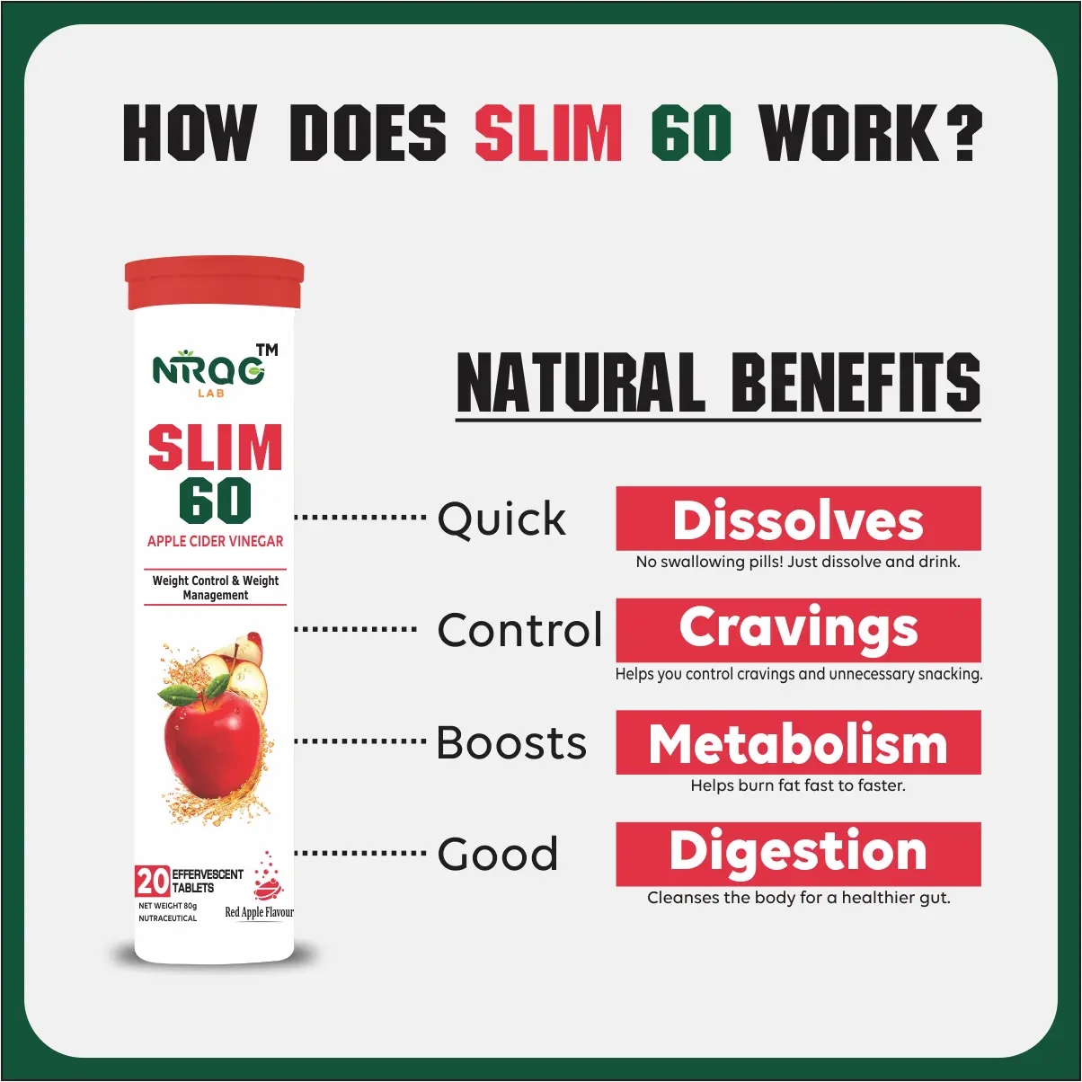 Nirog Lab Slim 60 ACV Apple Cider Vinegar is often used to curb appetite & increase satiety. Apple Cider Vinegar Effervescent with mother helps with overall well being.