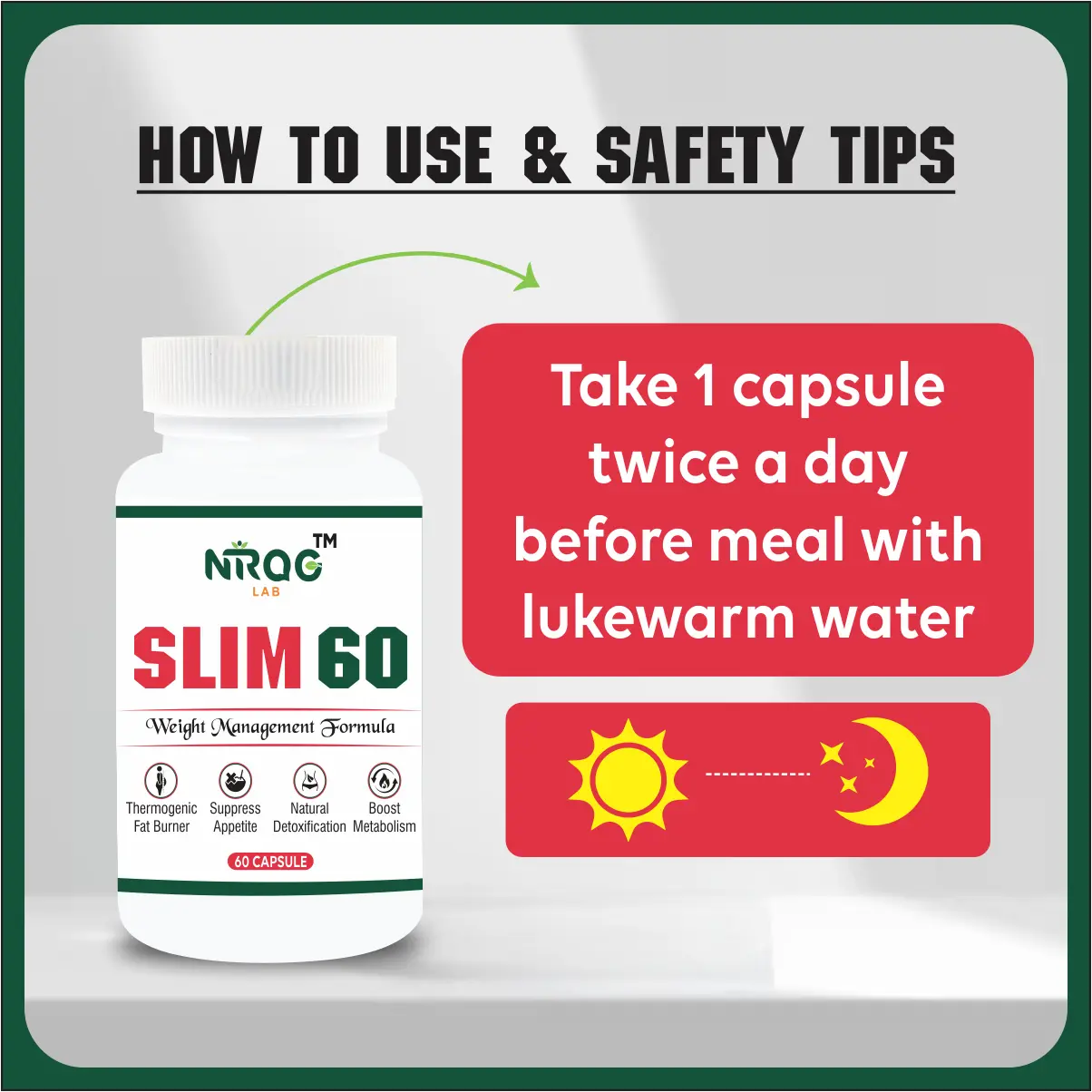 For best results, Slim 60 should be used along with a healthy diet and regular physical activity. While it can support your weight goals.